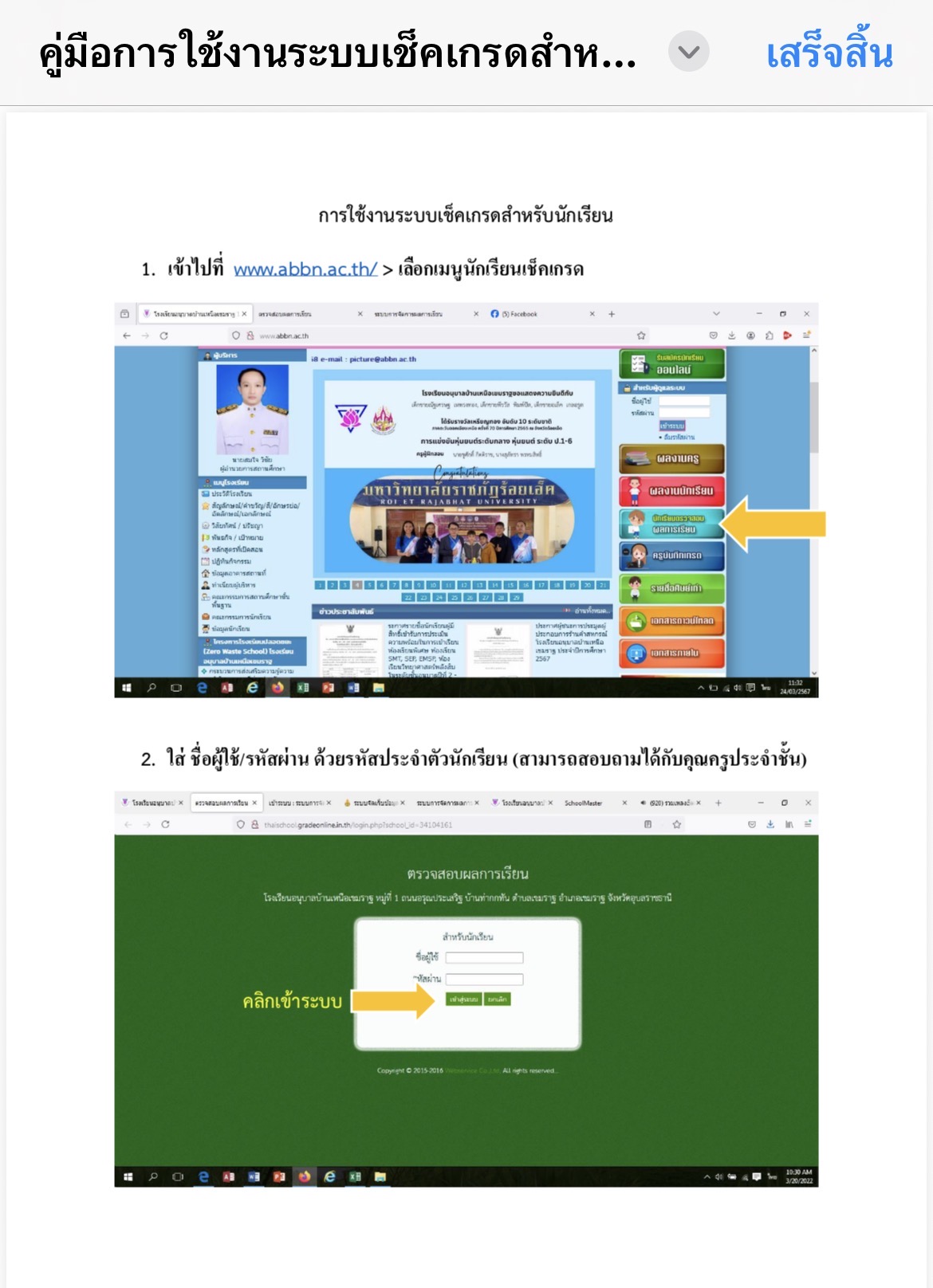 การเข้าดูผลการเรียนนักเรียนในระบบจากเวปไซต์โรงเรียน